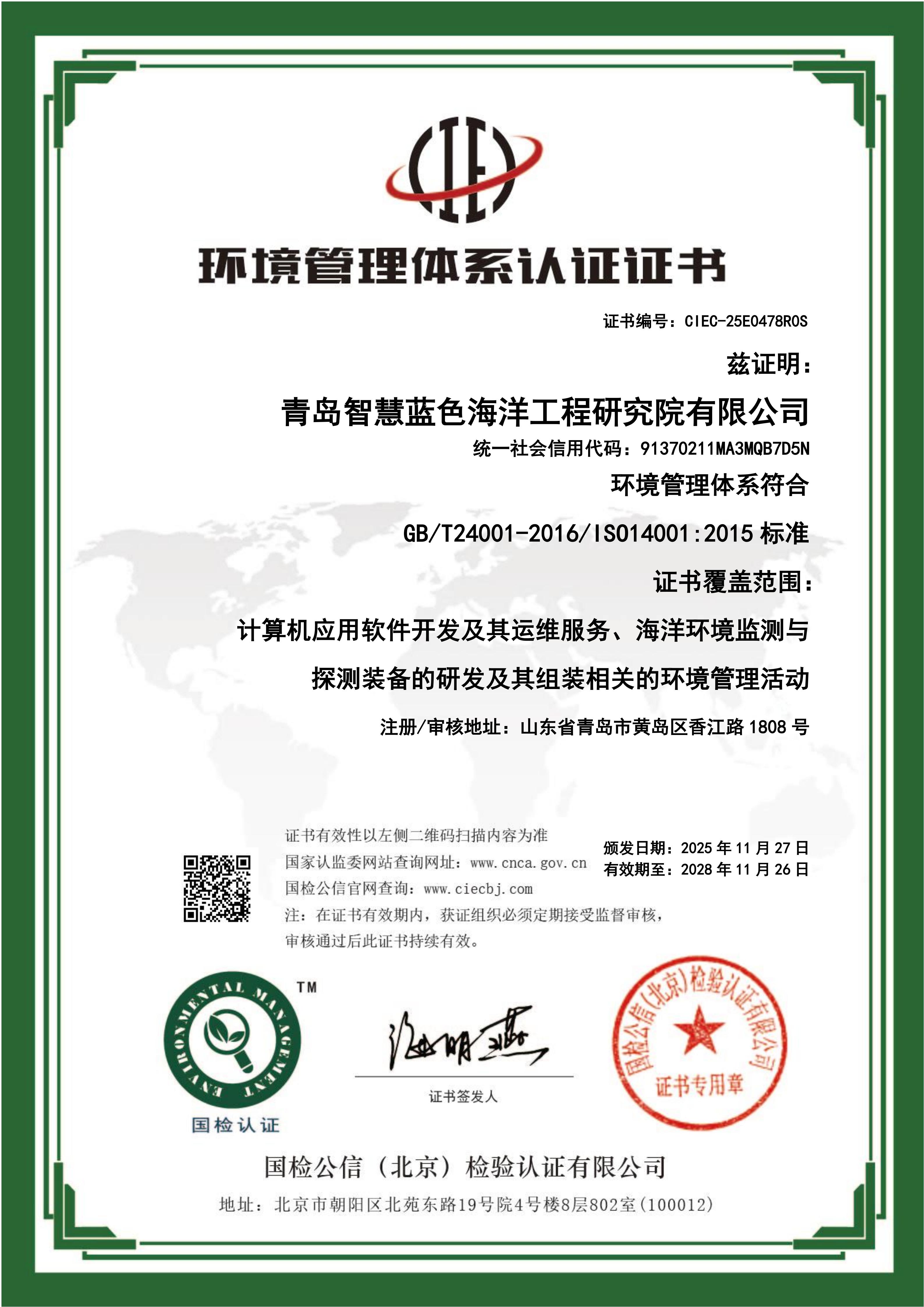 2025年11月,研究院顺利通过职业健康安全管理体系(ISO 45001)和环境管理体系(ISO 14001)双认证,标志着研究院在规范化、科学化管理的道路上又迈出了坚实一步,为深耕海洋科技领域、服务国家战略提供了更加坚实的体系保障。
